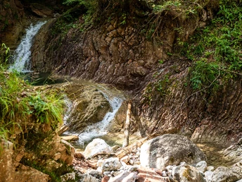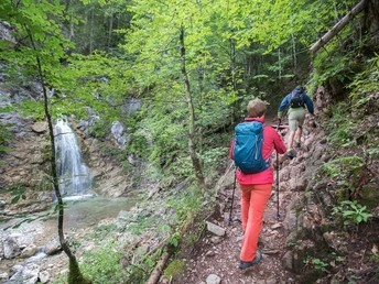 Reizvoll geht es zu Beginn durch die Schleifmühlklamm, dann auf einem hübschen kleinen Steig durch den Wald zum Gipfelkreuz mit schöner Aussicht. Danach wartet das Freizeitprogramm am Erlebnisberg Steckenberg mit Alpakas, Rodelbahn auf dich.