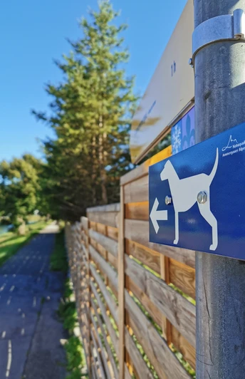 Zu Beginn der Runde verläuft der Weg entlang der Ammer auf einem gekiesten Weg, der auch von Fahrradfahrenden benutzt wird. So wie hier gibt es entlang der ganzen Route immer wieder Bänke, die zum Verweilen und Genießen einladen. Vor einer kleinen Brücke mit Holzgeländer biegt die Hunderunde Fiffi nach rechts in einen Kiespfad ein, hier dem Bachverlauf folgen bis zum bekannten Passionsspielhaus von Oberammergau. Dort angekommen am Heinzeller-Haus nach links in die Feldiglgasse abbiegen. An der Kreuzkirche vorbei und danach links gehen bis zur Brücke, dort rechts in den Pfad Lainenflecken einbiegen. Diesem Weg, der an der Großen Laine entlangführt, ca. 1 km immer geradeaus folgen (dabei eine Straße überqueren und ein Stück an der Straße entlang gehen, der Weg geht dann geradeaus in den St. Gregor-Weg über). Am Ende dieser Strecke entlang der Großen Laine wendest Du Dich nach rechts in die Straße Am Vorgstaig. An der Straße leicht rechts halten, die Ludwig-Lang-Straße überqueren und in die Aufackerstraße einbiegen. Rechter Hand vor den Parkplätzen befindet sich ein Bürgersteig. Auf diesem Bürgersteig geradeaus, bis der Weg in Am Rainenbichl übergeht, dann noch ein Stück weiter bis das Restaurant am Lärchenhügel passiert wurde, um dann rechts einzubiegen auf den Kiesweg, der in den Wald führt. Hier können Hunde gut freilaufen. Der Kiesweg endet an einer Straße, der bergauf gefolgt wird. Vorbei am Parkplatz geht es ein Stück in das Klinikgelände Waldburg-Zeil hinein, davon nicht verwirren lassen, bis zum gläsernen Übergang. Davor dann rechts halten, danach nochmal rechts und dann gleich wieder links in den Wald hinein. Ab hier dem Kiesweg bergab folgen, bis dieser auf die Hauptstraße trifft (Vorsicht: viel befahren!). An der Straße angekommen, diese überqueren und hinein in Lindermoos laufen. Nach der Brücke geht es gleich wieder rechts, vorbei am Festplatz. Diesem Weg weiter folgen. Rechter Hand fließt der Labergraben und liegt der Campingpark, linker Hand bietet sich eine schöne Sicht auf den Kofel. Rechts die Brücke überqueren und dann wieder links abbiegen. Hier laufen die Hunderunde Fiffi und die Hunderunde Waldi zusammen, weswegen das Schild mit dem weißen Hund nun zweifarbig ist, zur Hälfte blau und zur anderen Hälfte pink. Auf dem Kiesweg entlang der Ammer ist es wieder gut möglich Hunde frei laufen zu lassen. Hier dürfen Hunde auch in der Ammer baden, in den Ammerquellen ist das jedoch verboten. Diese Strecke ist auch Teil des Ammer-Amper-Radwegs, weswegen es häufiger zur Begegnung mit Radfahrenden kommen kann. Wer dem Weg folgt und dabei noch eine Straße überquert, gelangt wieder zum Startpunkt der Hunderunde Fiffi an der Ammerbrücke in der Bahnhofsstraße.