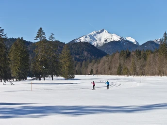 Mit der perfekten Ausrüstung wird Ihr persönlicher Wintertag im Naturpark Ammergauer Alpen unvergesslich. Das passende Winterequipment wie Grödeln (Spikes für Wanderschuhe), Wanderstöcke, Schneeschuhe, Schlitten oder Langlaufski können Sie je nach Angebot bei unseren Partnern ausleihen: