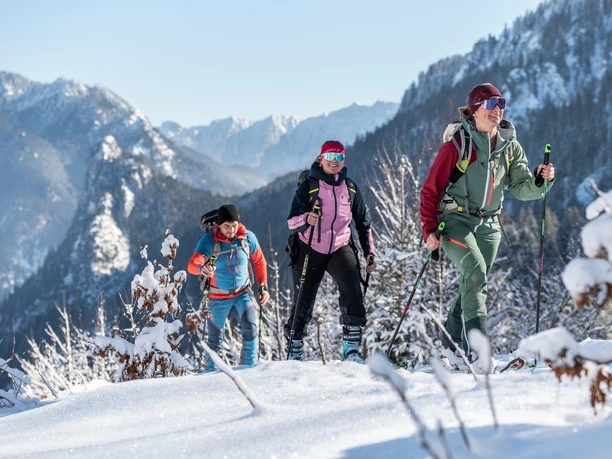 Bei zu geringer Schneelage im Wald, kann man den Weg der Skitouren-Talabfahrt zum Aufstieg nutzen.