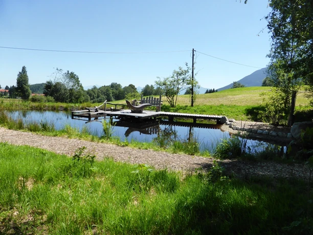 Nun kommen Sie am Moorlehrpfad Bad Kohlgrub an. Hier erfahren Sie einiges über die Besonderheit unseres wertvollen Heilmoores und ein kleiner Weiher mit Liege lädt zum Entspannen ein.