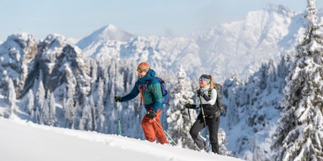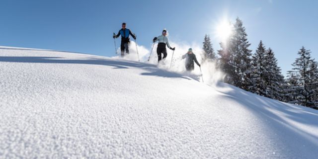 Abenteuerlustige können die Natur der Ammergauer Alpen auch beim Schneeschuhwandern entdecken. Im Gegensatz zum Winterwandern auf geräumten Wegen geht es beim Schneeschuhwandern auf ausgewählten Routen abseits der geräumten Wege durch den Naturpark. Die Region bietet dafür eine Vielzahl an Routen mit unterschiedlichen Schwierigkeitsgraden, von gemütlichen Touren für Anfänger bis hin zu anspruchsvollen Strecken für geübte Schneeschuhwanderer. Also Schneeschuhe an und ab in die Natur!